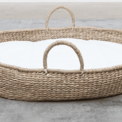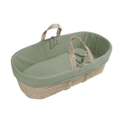 Les premiers jours, difficile de se séparer de son nouveau-né, même le temps d’une sieste. Ce couffin authentique, tissé à la main, permet de garder bébé tout près de soi à la maison. Il est livré complet : coussin, parure, et drap dans une teinte vert pastel. Les poignées solides simplifient les déplacements, et la fabrication entièrement artisanale garantit un produit de qualité, pensé pour durer.